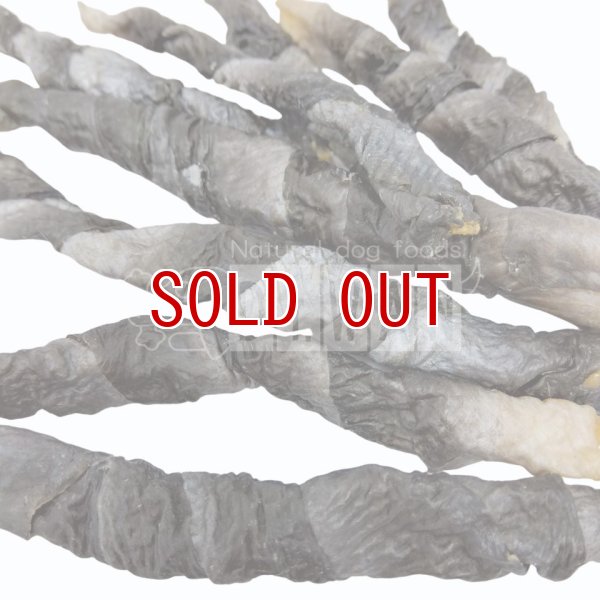 丁寧に棒状に巻き上げたこのおやつは、犬用ガムのように噛んで楽しむことができます。